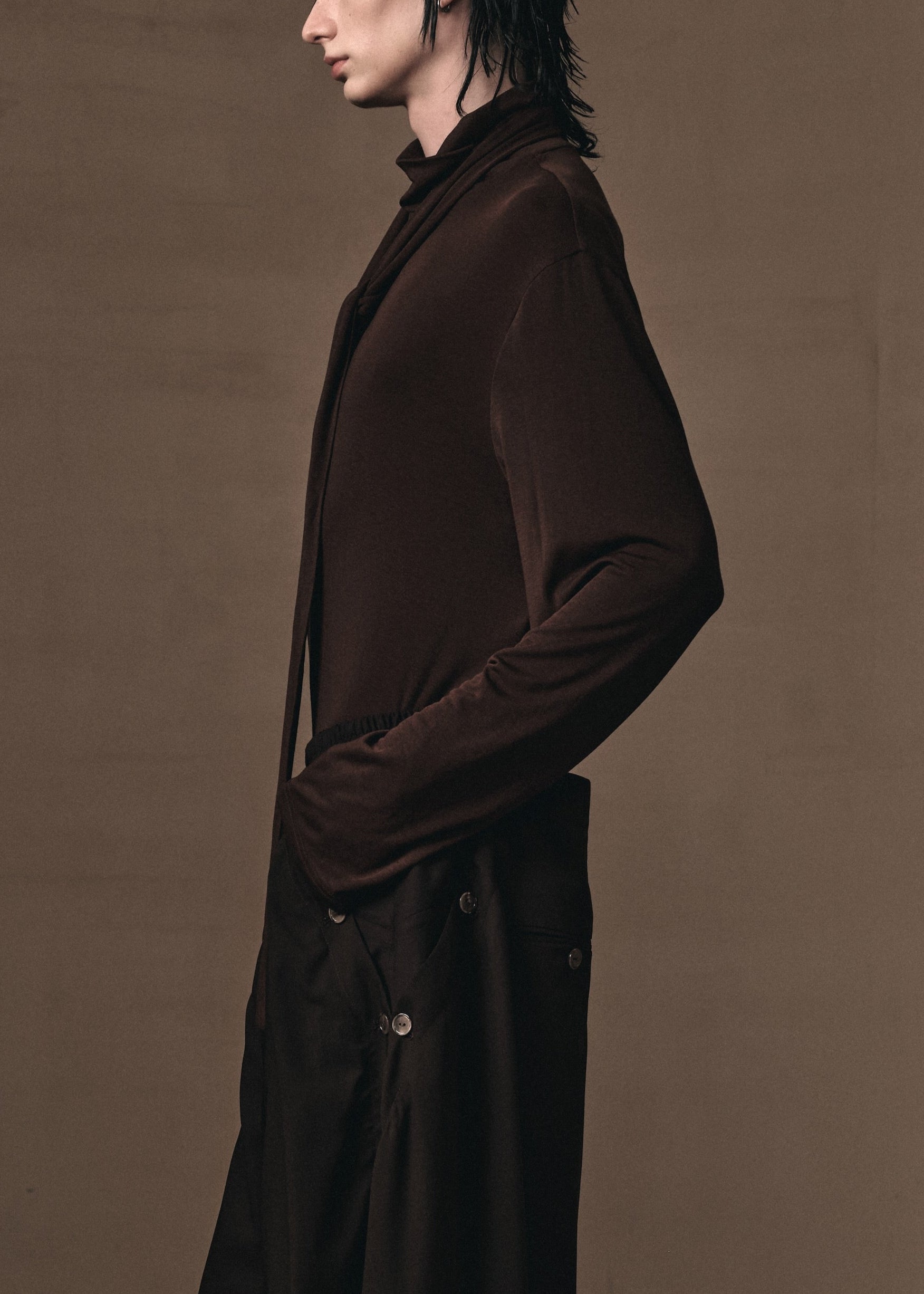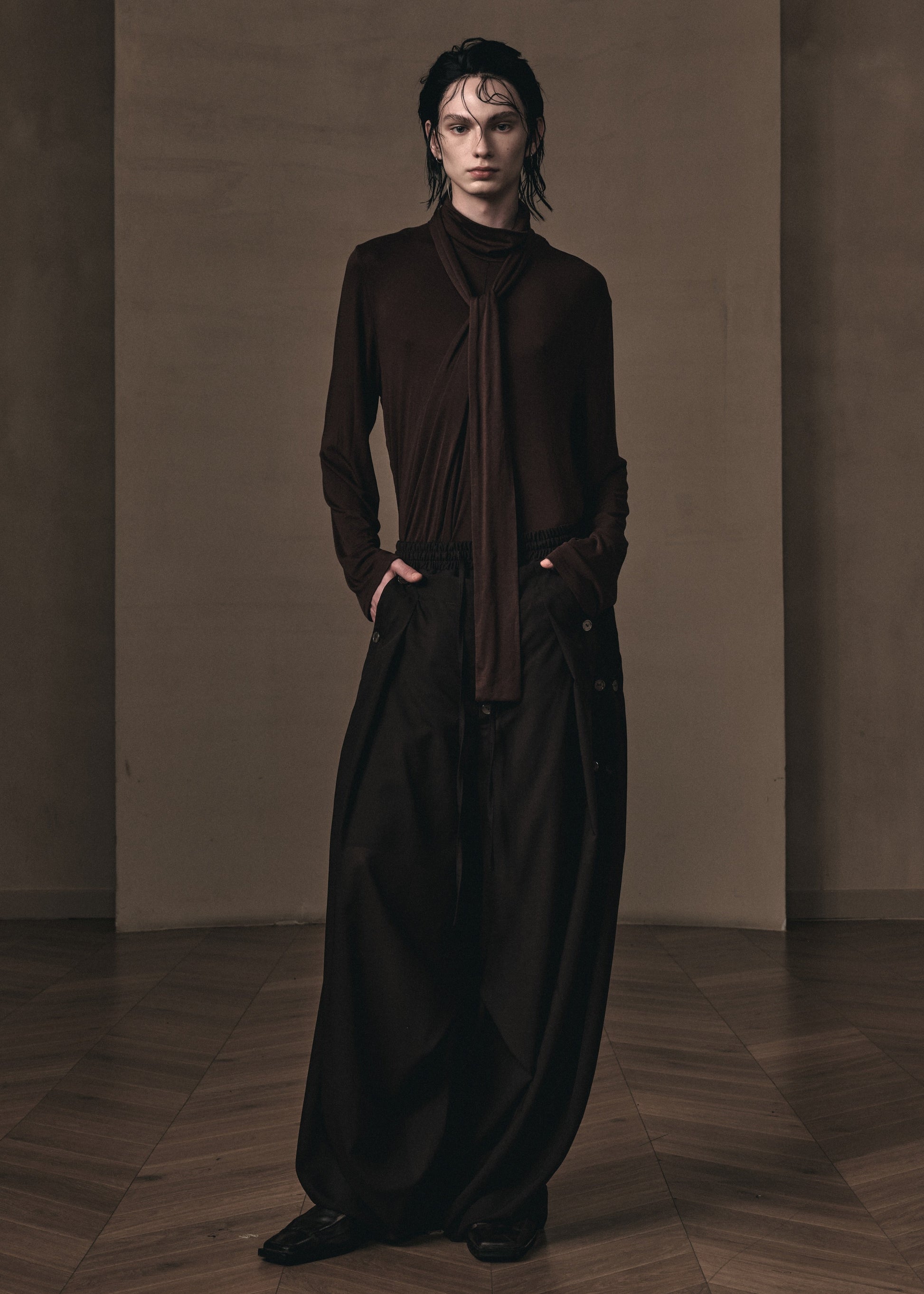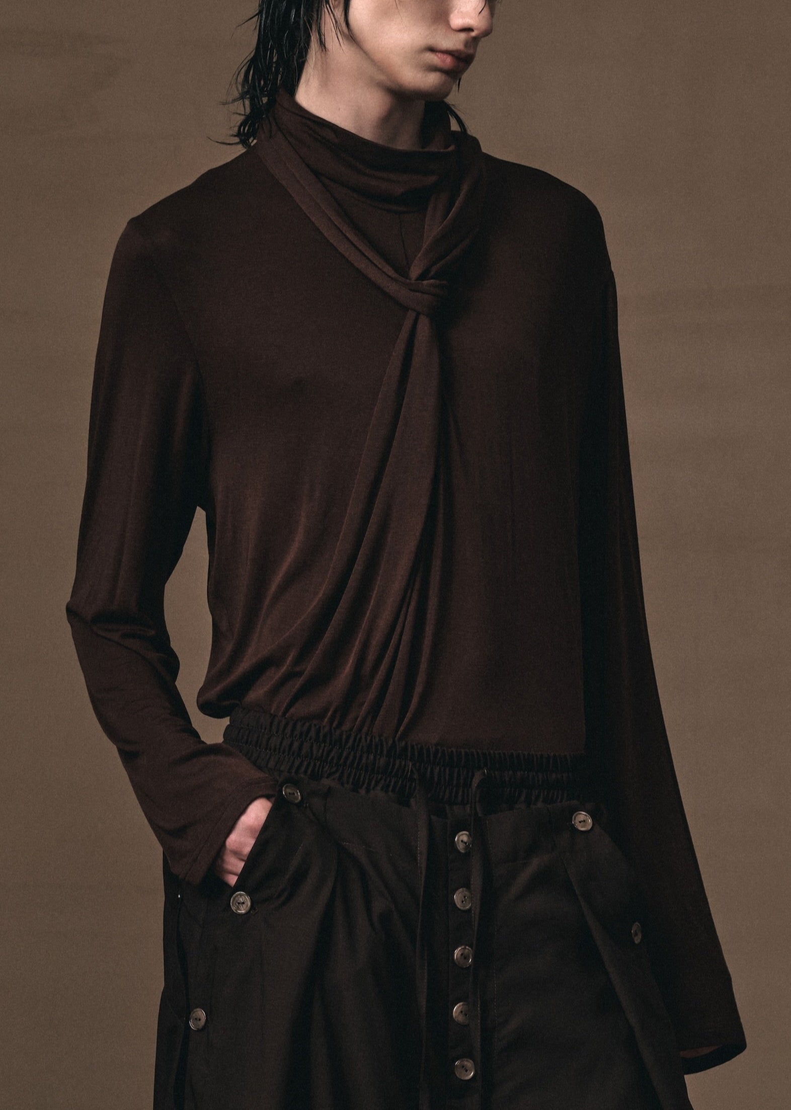 The Jersey top with a unique pattern and a tie tied in front of the chest has a special sense of style.